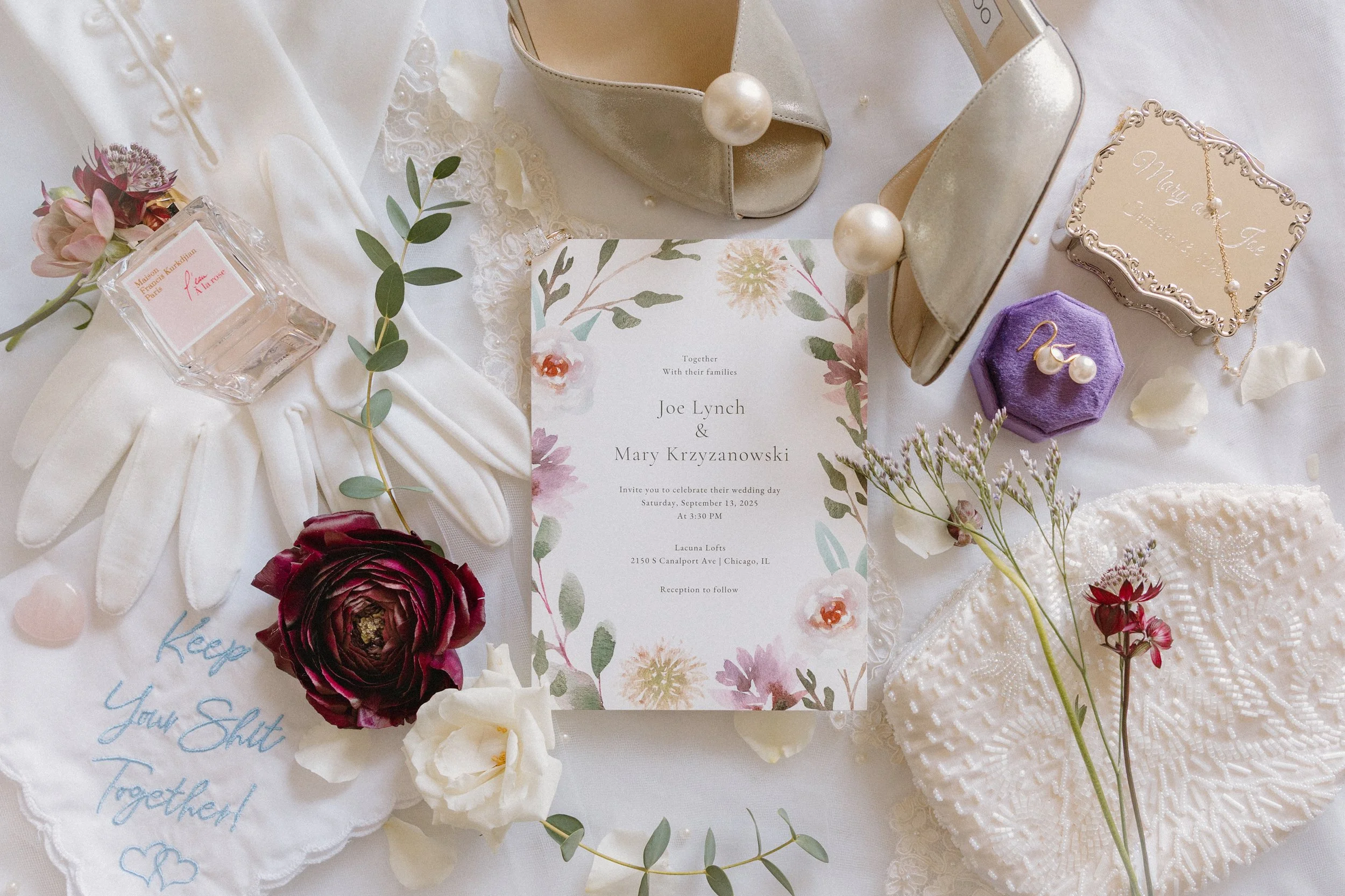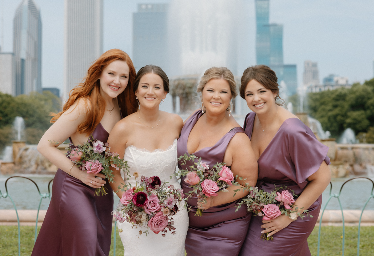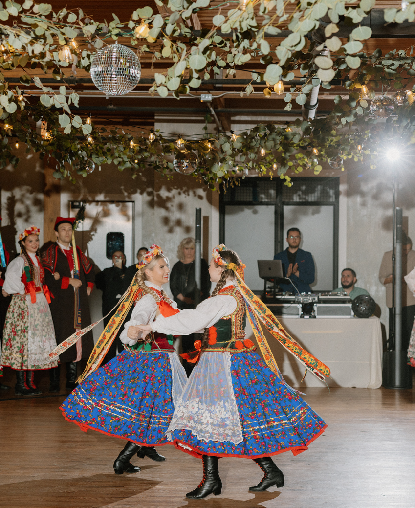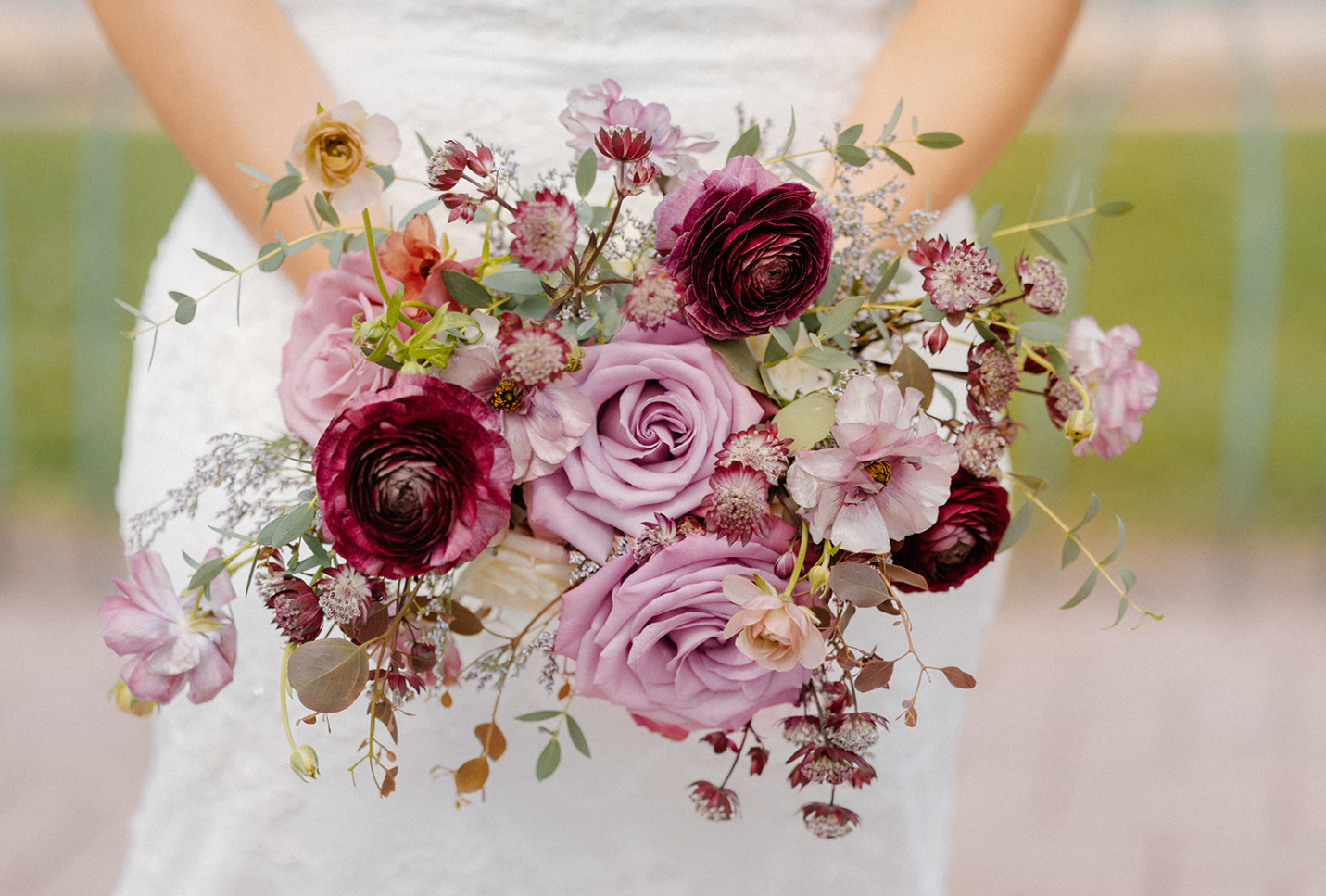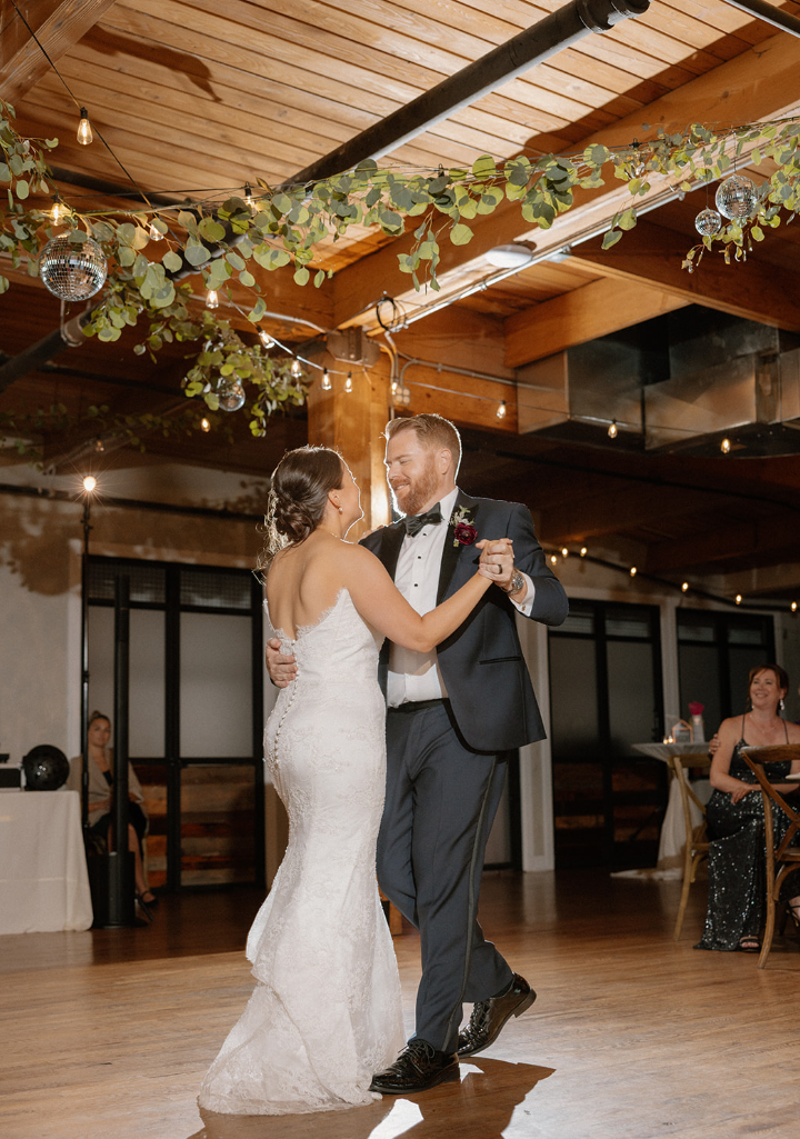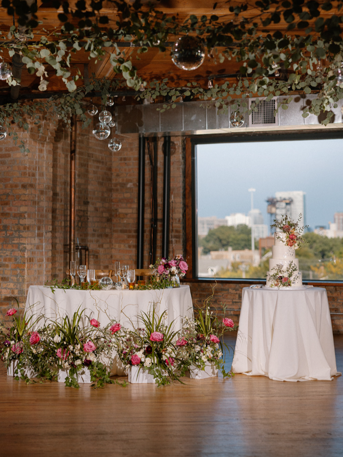 The opportunity to design for Joe & Mary’s sunny September wedding was a special honor. We had the privilege of watching their love grow and shine every time they stepped into our shop as walk-in customers. Every Valentine’s Day, birthday, and special occasion was marked with one of our bouquets as thoughtful gifts to Mary or their loved ones. We naturally developed a friendship with them, and were beyond excited when they approached us to be their wedding florist! We designed a grounded floral meadow, aisle arrangements, and their personal items for ceremony. For reception, our team hung long-stem eucalyptus along the string lights at Lacuna Lofts, glittering disco balls above the dance floor, and arranged loose greenery on each guest table. Along with our repurposed floral from the ceremony, Lacuna Lofts’ La Galleria was transformed into a respite from the world outside, filled with lush greenery and shades of purple, mauve, and blush, with the venues view of the city shining as a backdrop. Their personal touches — like a magic show by AJ Sacco, and an homage to Mary’s polish heritage with a performance of the Polonez and Mazur dance — reflected their fun-loving nature and the qualities that make them, and their love, unique.